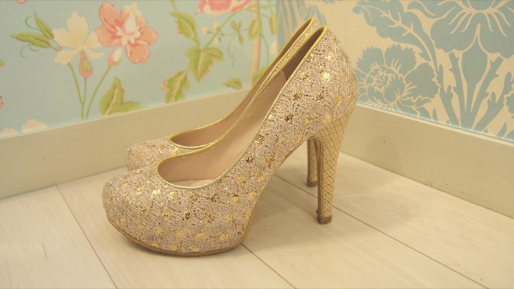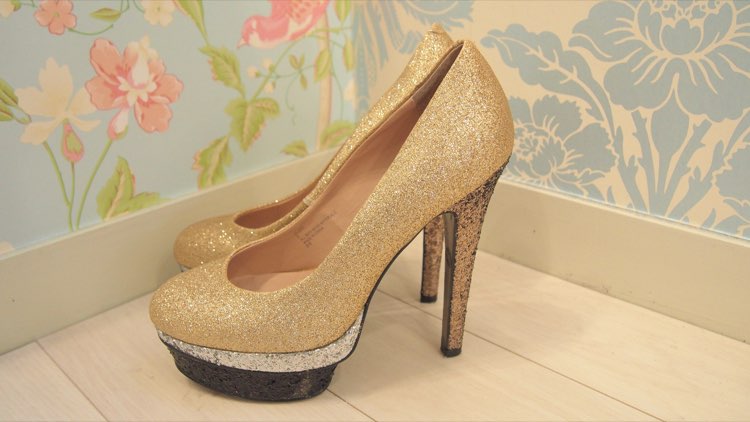 BETSEY JOHNSON ゴールドグリッターパンプス 6