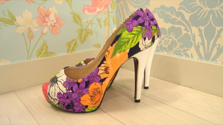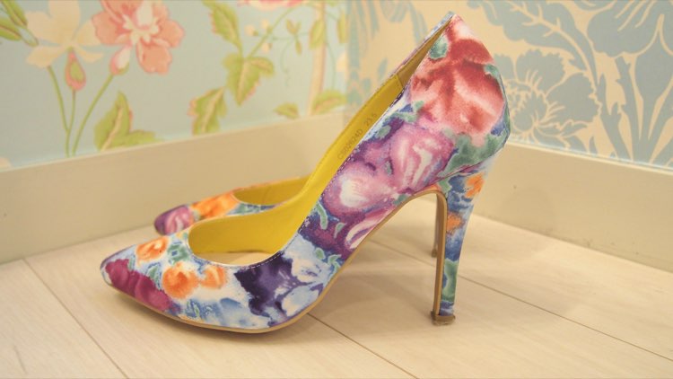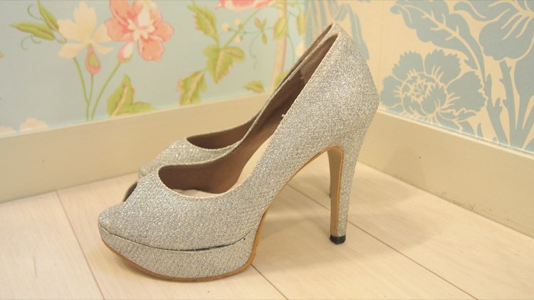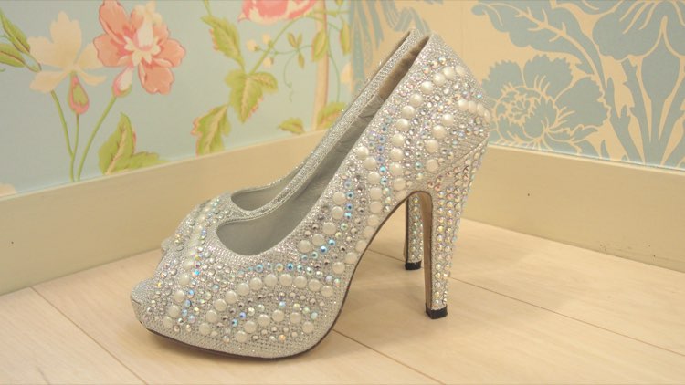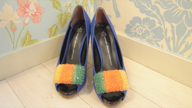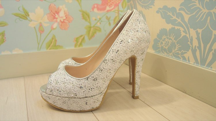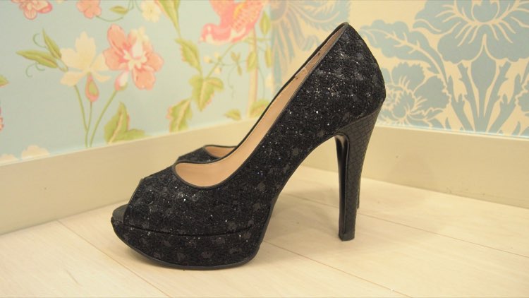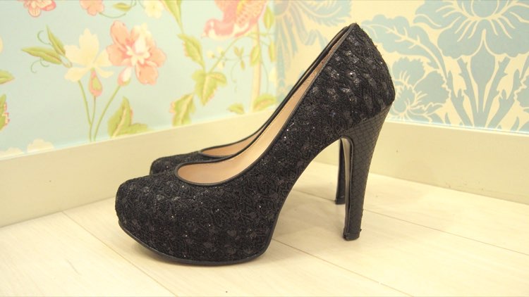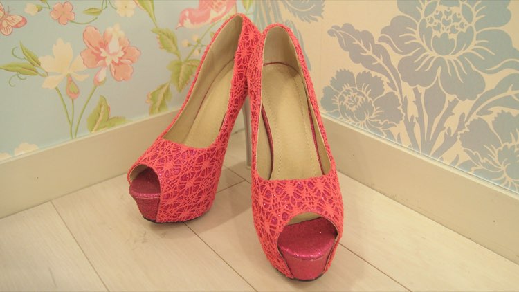 ビビッドピンクグリッターレースプラットフォームパンプス /36