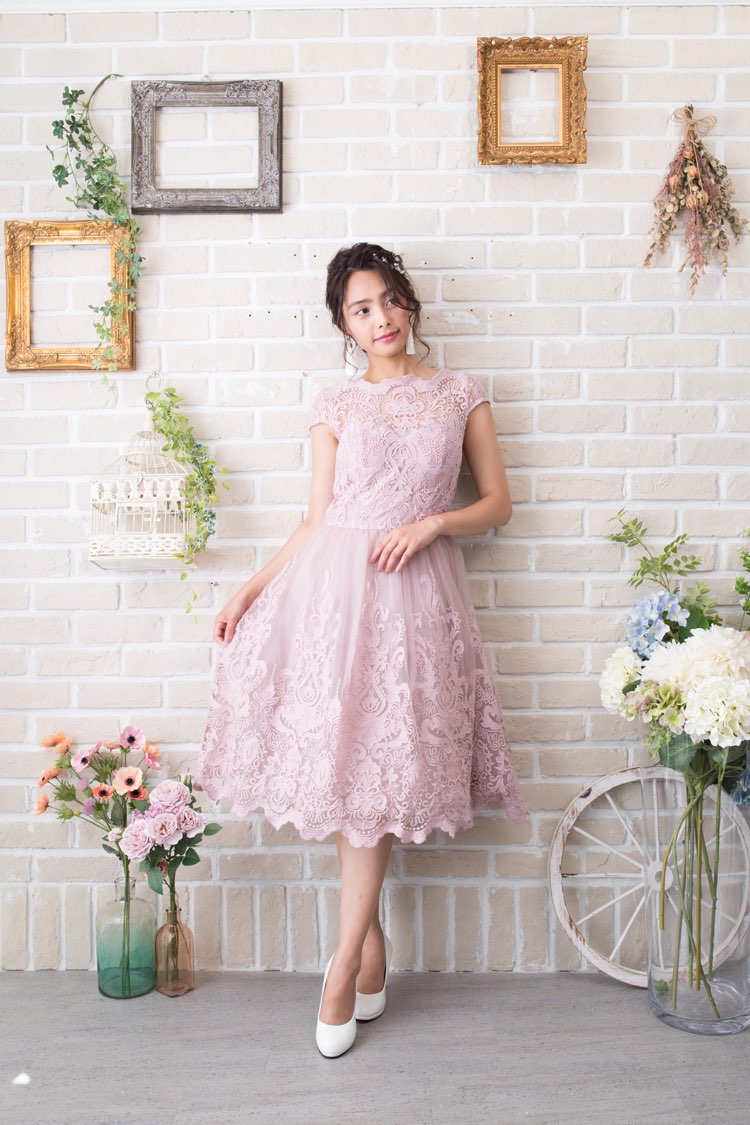 ダスティーピンク総レースクラシカルミモレドレス