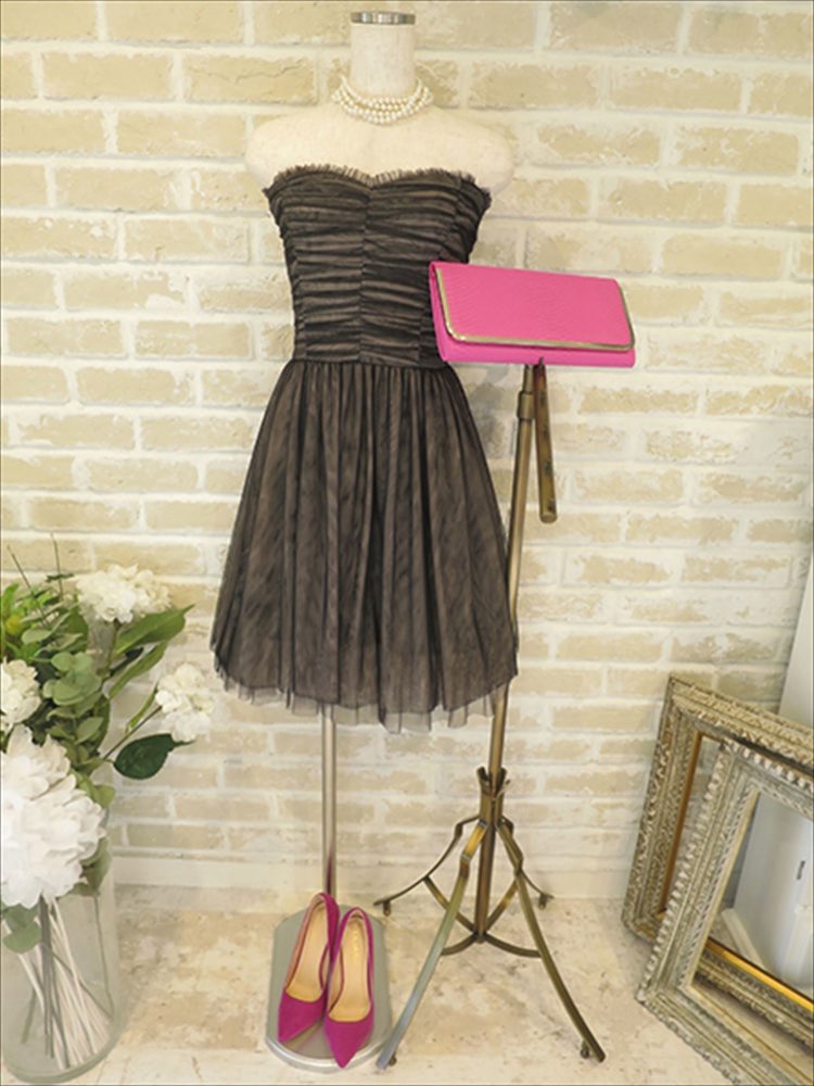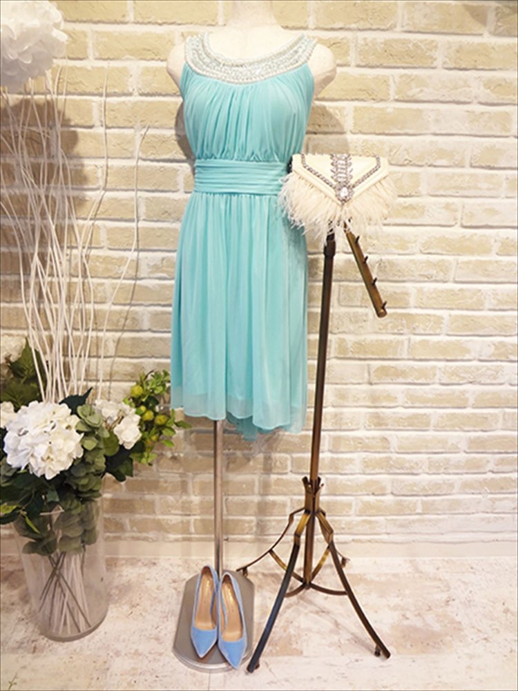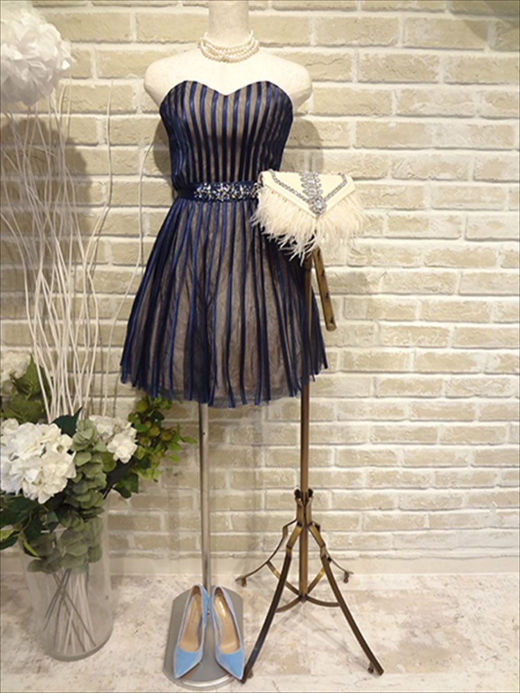 ロイヤルブルーのチュールウエストリボンベアドレス