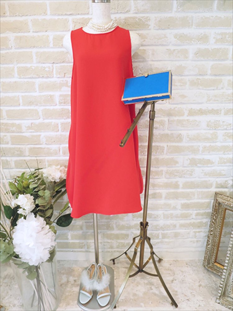 ウエスト切り替えサンシャインレッドドレス