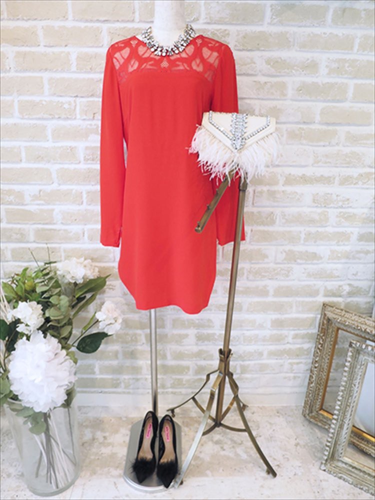 長袖コーラルレッドドレス