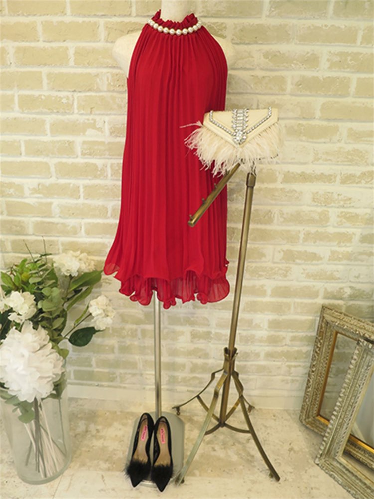 首元パールレッドドレス