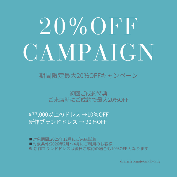 ※新作ブランドドレスについては後日ご成約の場合10%OFF となります