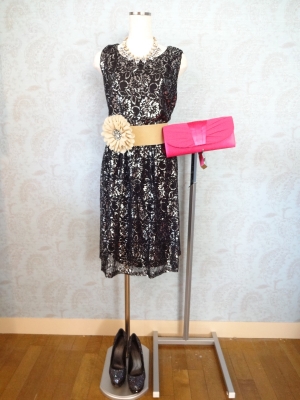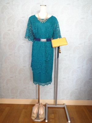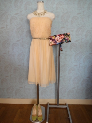 こちらは胸下切り替えなのでぽっこりお腹もカバーしてくれて、とってもほっそり見せてくれます。プラス細めのベルトをすれば、よりファッショナブルになってかわいいですよ。この時のベルトはあまり目立ちすぎるカラーを選ばずにゴールドやシルバーなどのドレスに馴染むようなカラーがおススメです。