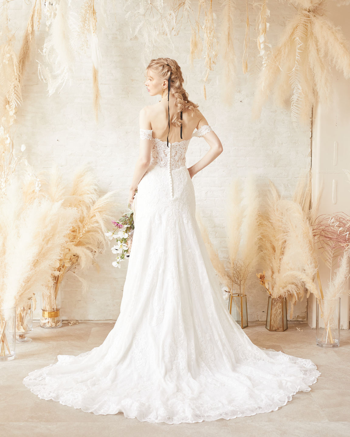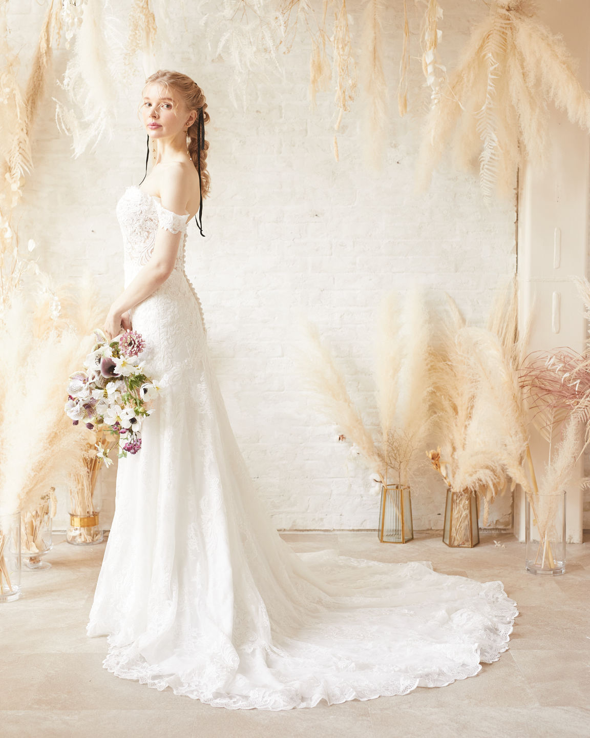 ニューヨークのハイブランド「Mori Lee」の新作ドレス。オフショルは取り外し可能で、2way