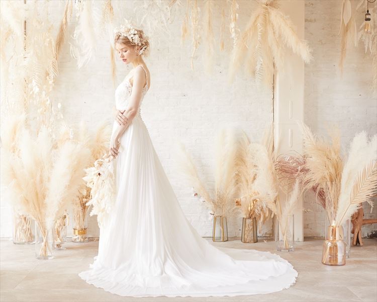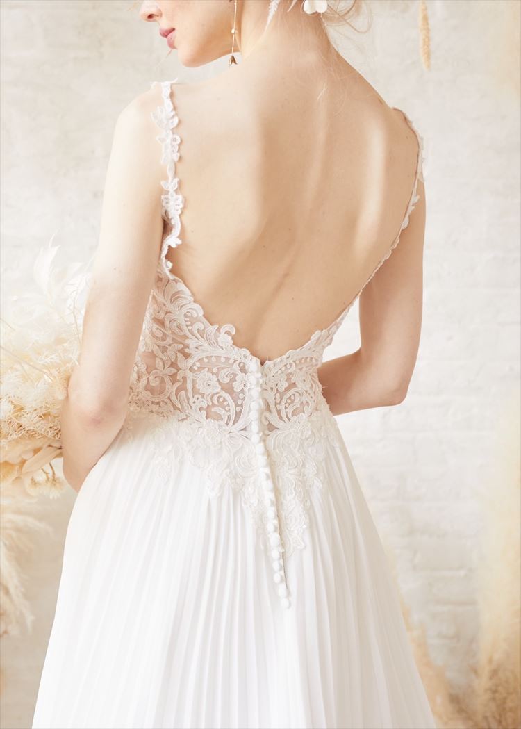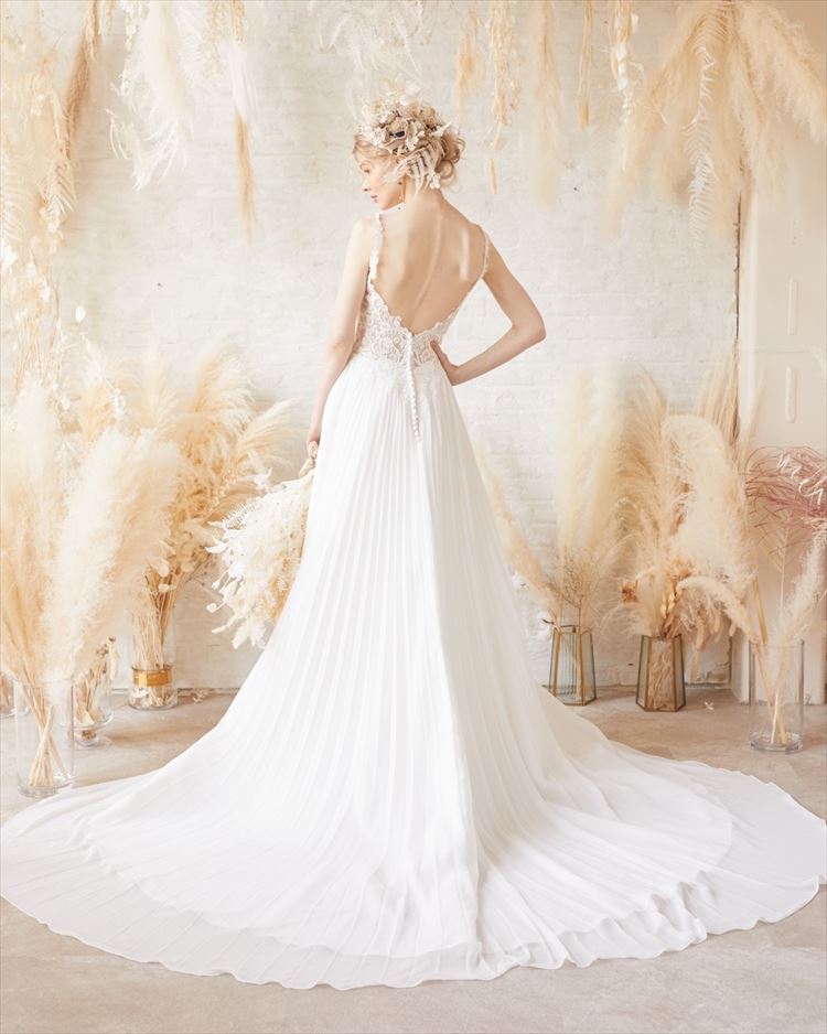 米国を中心に海外では有名なMORILEEですが、日本ではインポートドレスとして知る人ぞ知るブランドです 他の人とかぶりたくない花嫁さまにピッタリです✨ プリーツスカートが縦のラインになりスッキリとした印象に、繊細なレースのキャミ部分は女性らしさをより一層演出してくれます。 挙式、披露宴、二次会、フォトウェディングなどさまざまなシーンでおすすめです