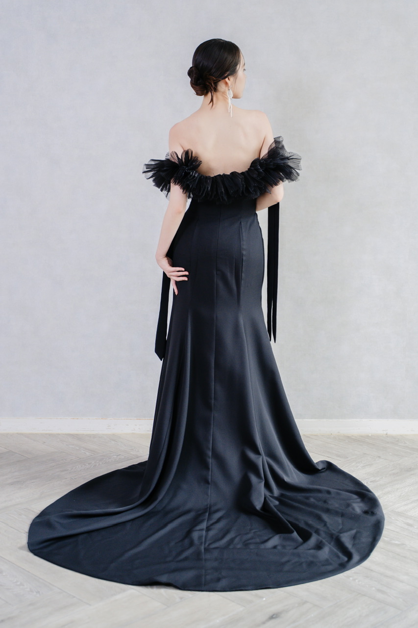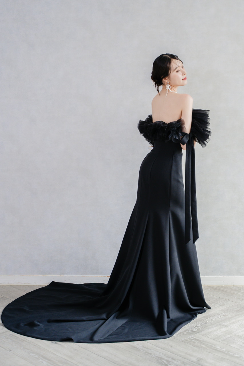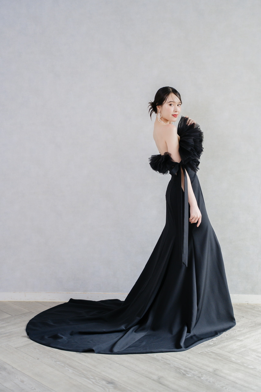 ブラックドレスは、白のウェディングドレスとはまた違った大人でシックで他の色にはない印象を与えることが出来ます ホワイトドレスとは対照的な色の為、ガラッと雰囲気を変えることが出来るのでお色直しや、二次会、フォトウェディングなどにおすすめです