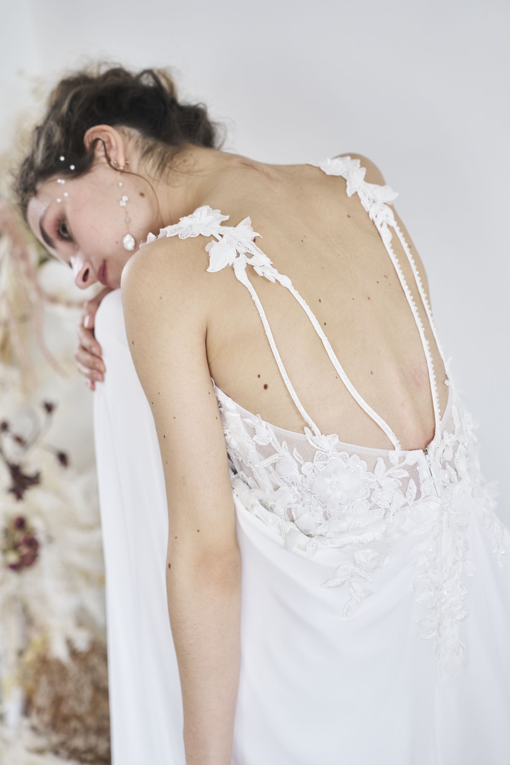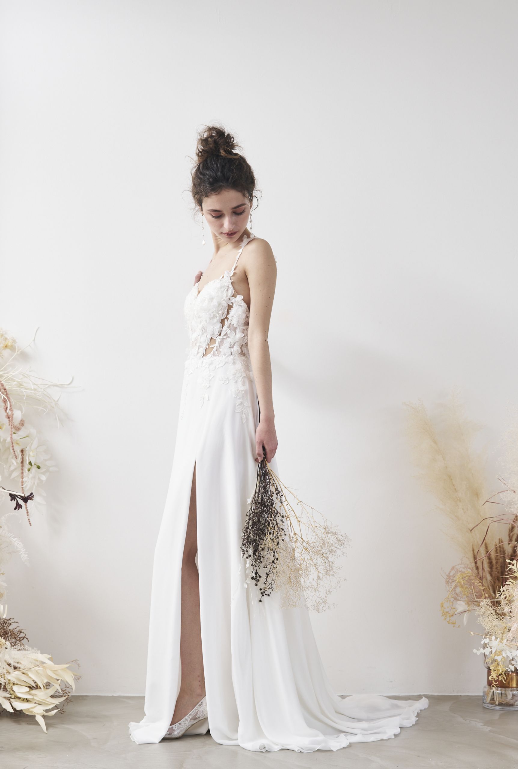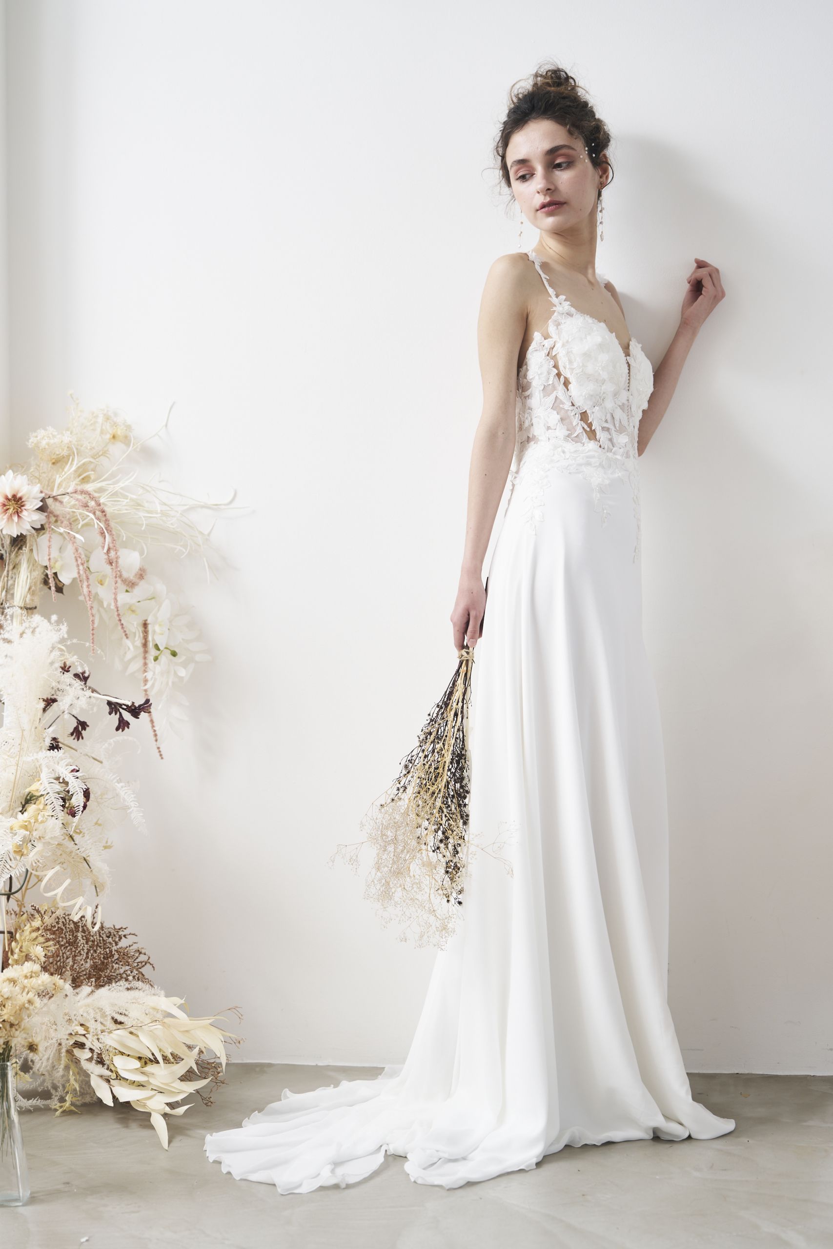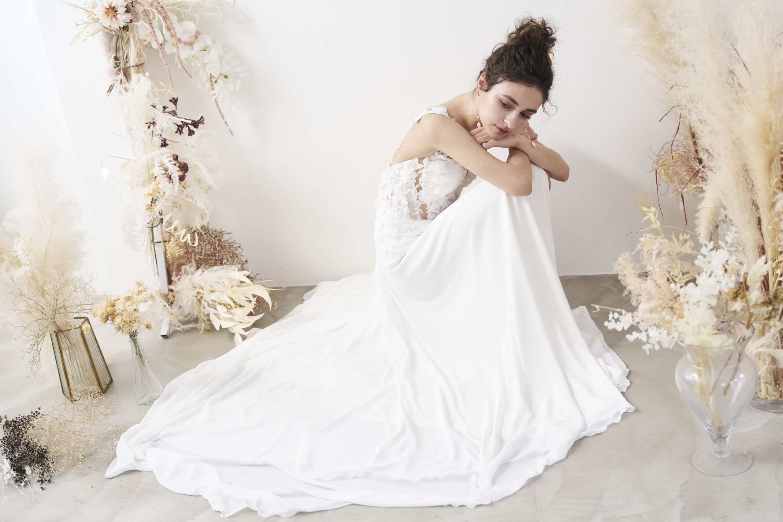 「ElizabethPASSION(エリザベスパッション)」 ヨーロッパの厳選された最高品質の生地のみを使用して1着1着丁寧に作成されていて、とっても繊細なレースが施されたドレス。