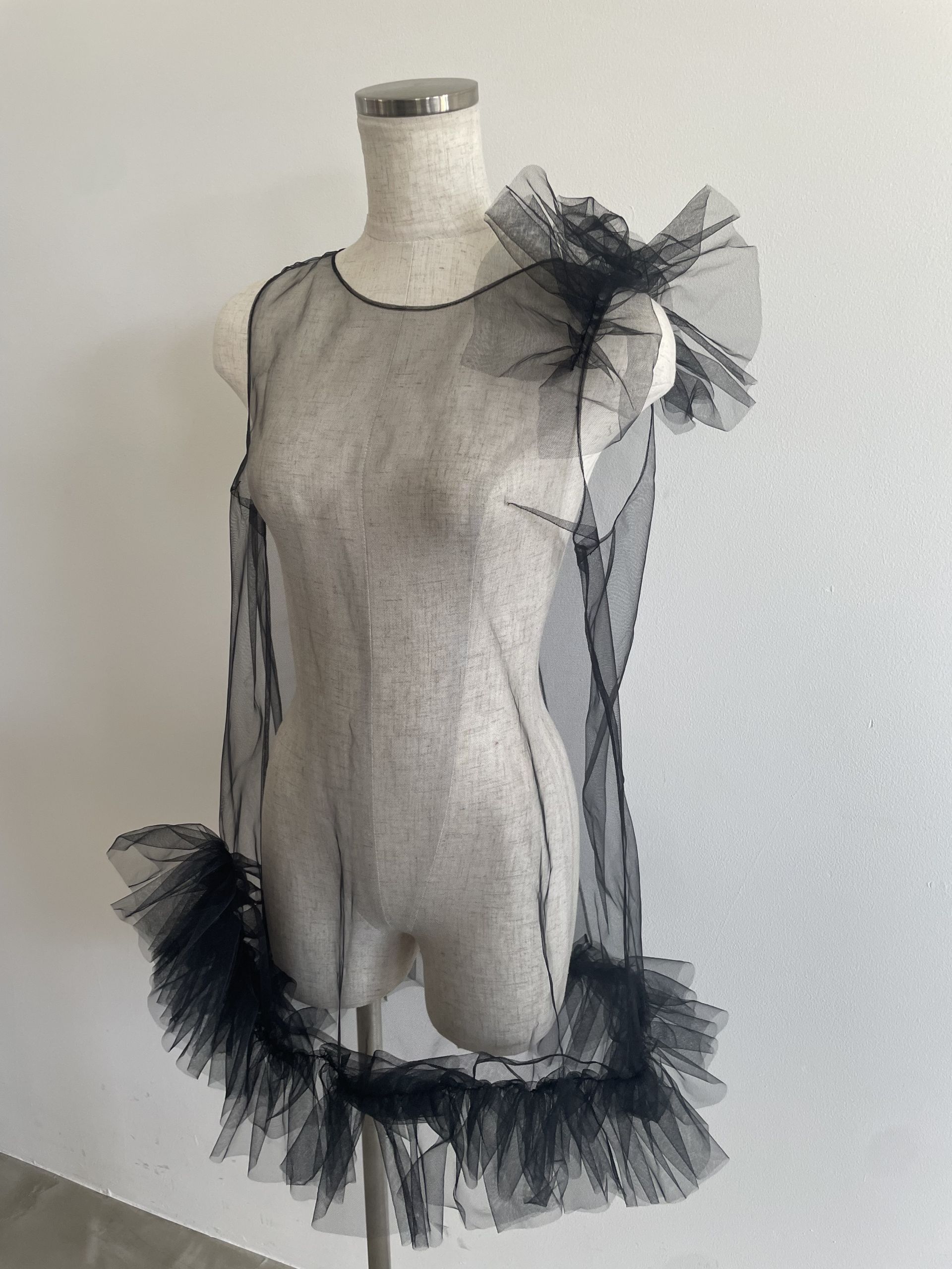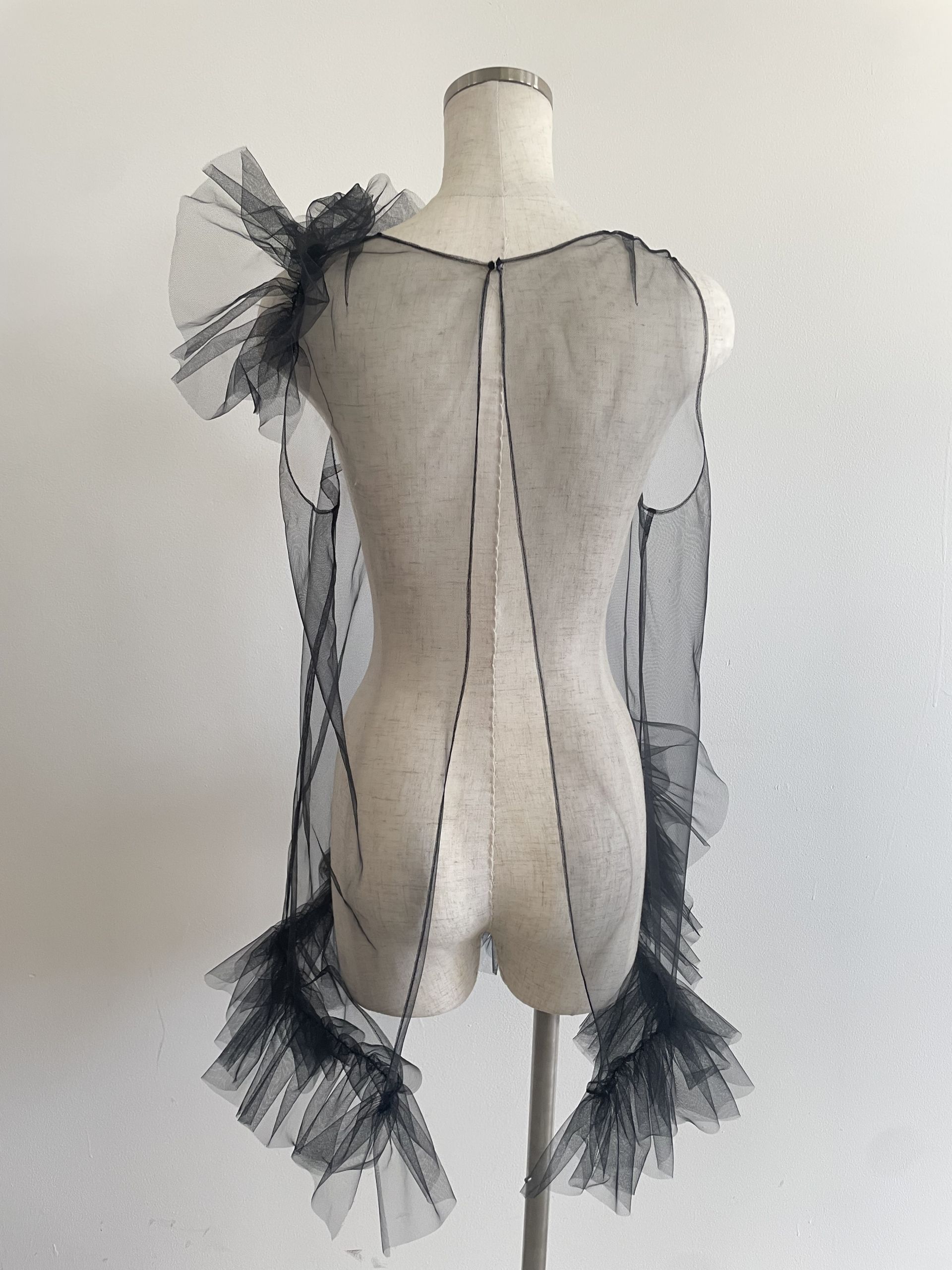 BLACK Tulle Sleeveless asymmetric tops /Free size