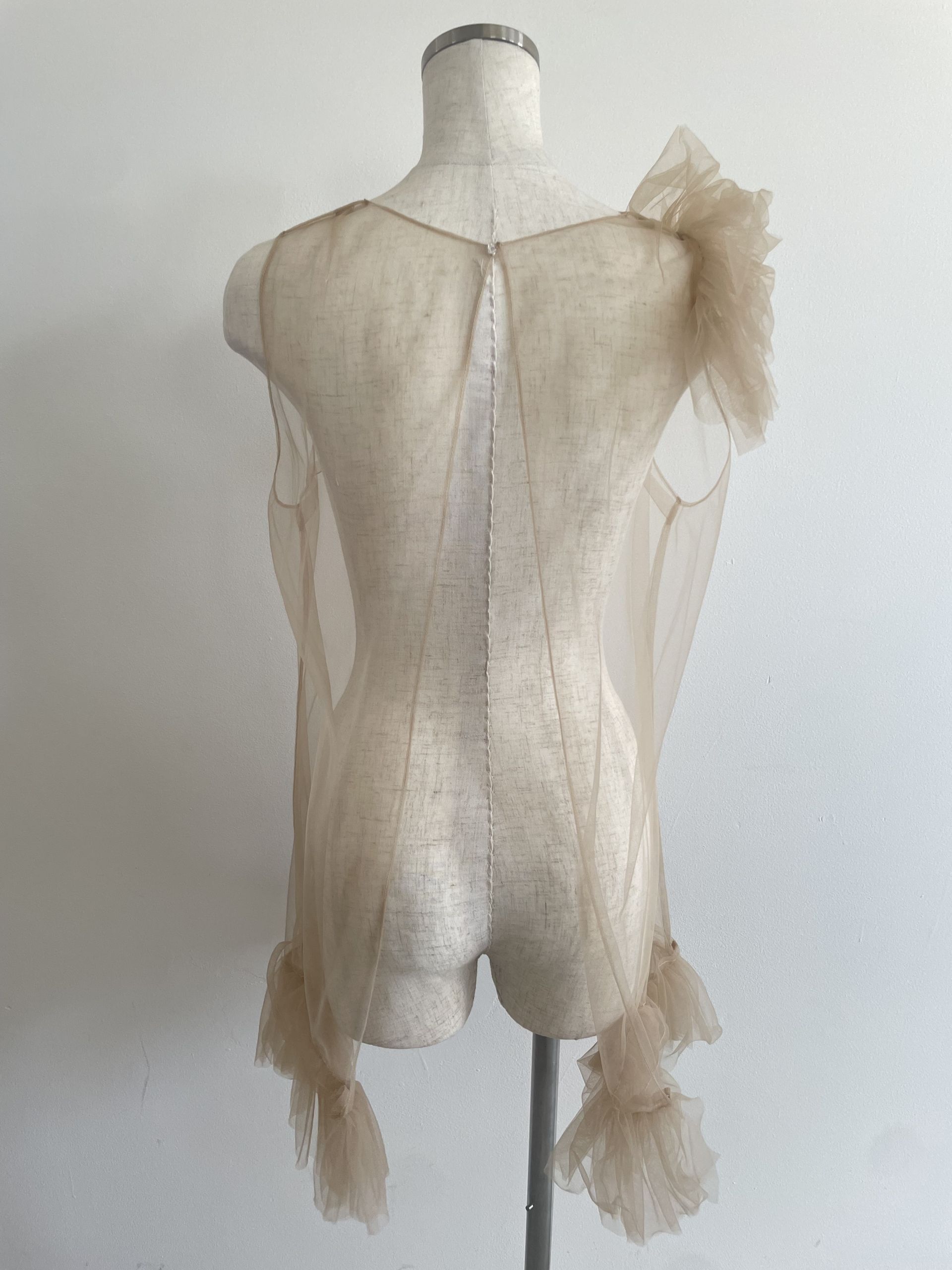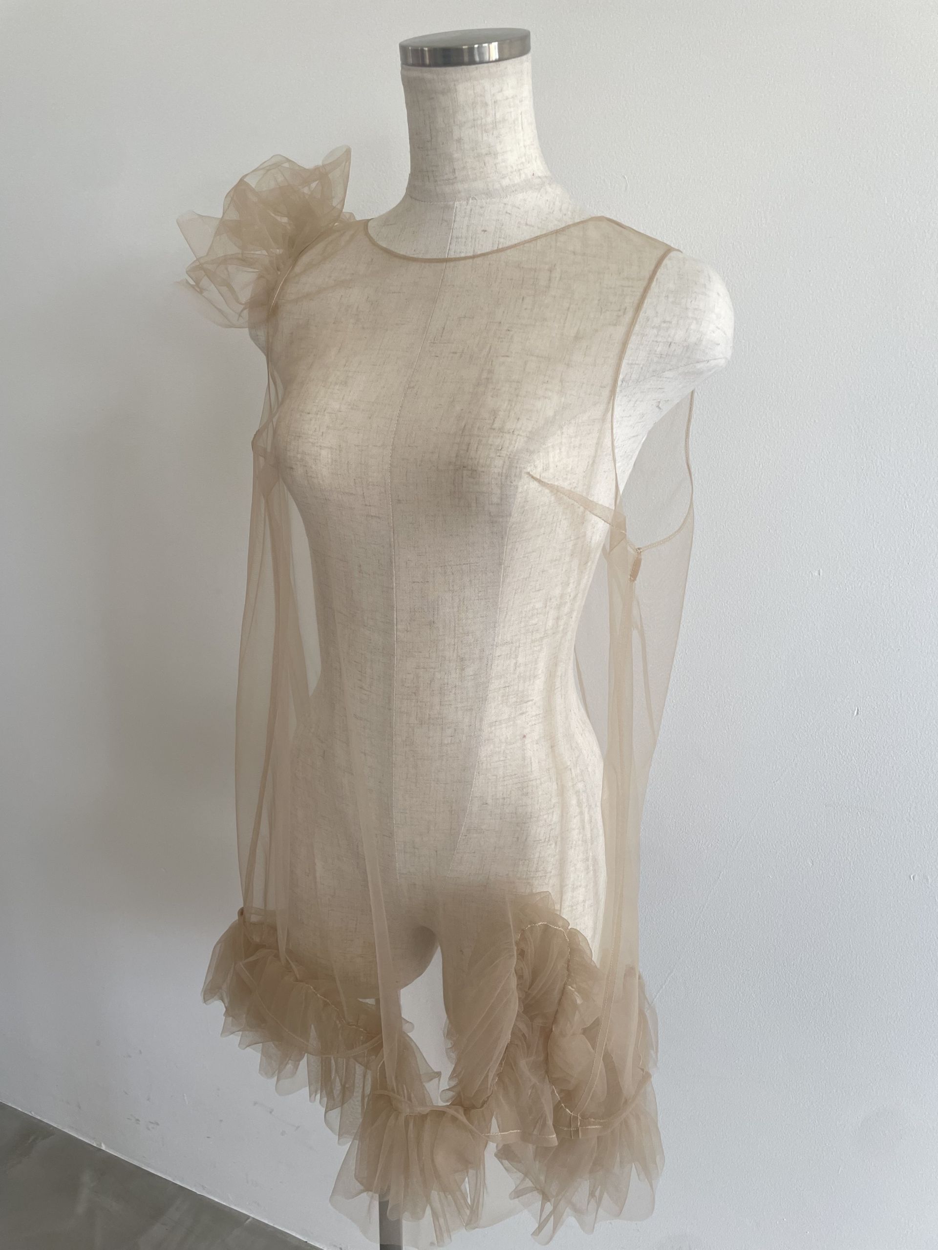 Beige Tulle Sleeveless asymmetric tops /Free size